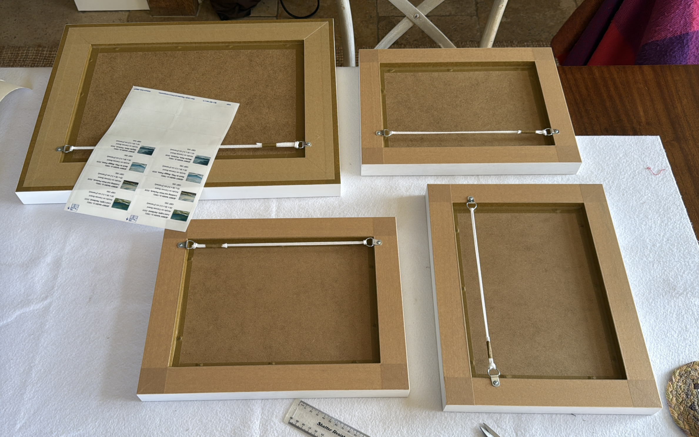 My paintings whether on canvas, board or paper, are framed carefully and sympathetically - including taping the bare wood at the rear of the frame and fitting strong D rings